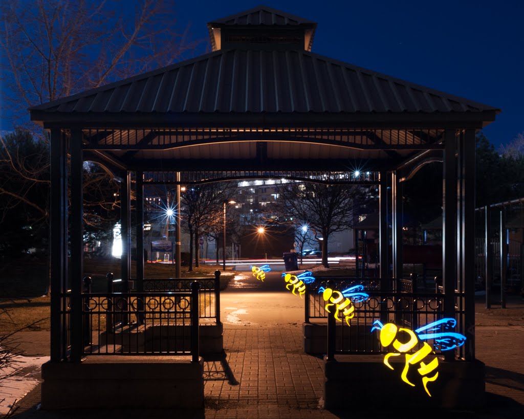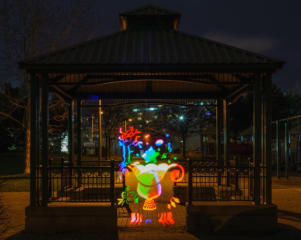 Bring to Light is a result of stencil light painting workshops for youth in Flemingdon Park. During the workshops, the participants designed stencils inspired by images that they felt close cultural connections to. I used these stencils to create light paintings in Flemingdon Park and Thorncliffe Park, the neighbourhoods that they reside in. The neighbourhoods were lit with the students’ stencils, integrating the concept of the students’ place in the city and in the artistic expression of the city.