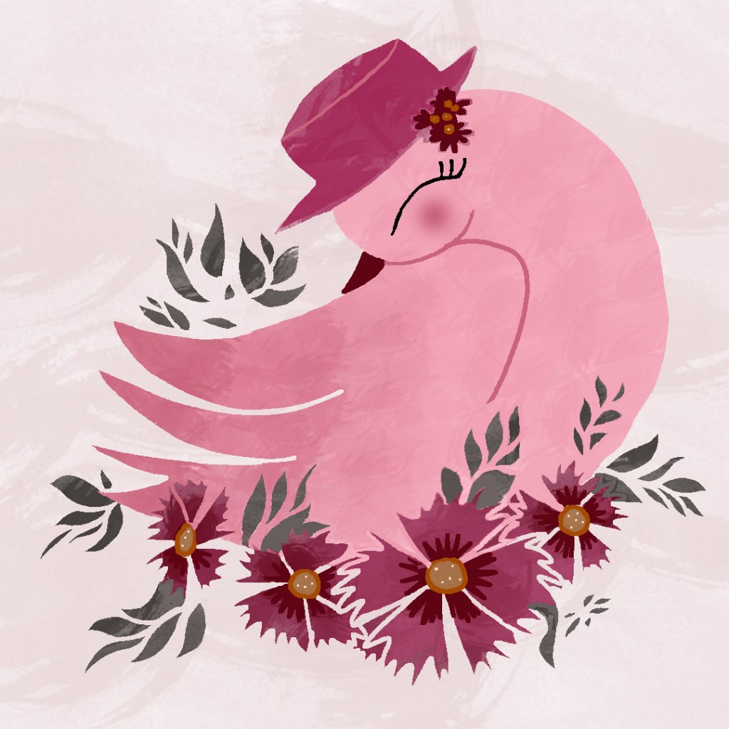 “The other pigeons called me a flamingo because of my pink feathers,” she cries, “the scarf hides my belly, but the rest of me is still pink!”